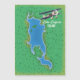 Sjö Engure Finland karta i en vacker retrotro stil som är korerad med ett bi-flygplan.