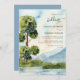 Sjö Evergreen Watercolor Dusty Blue Bröllop Inbjudningar