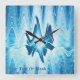 En vanlig, enkel, blå och vit fraktal som antyder en smält vatten sjö i en dal mellan glaciärtäckta berg. Lägg till din egen text.