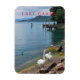 En vacker syn på vit svanar på Sjö Garda i Italien tryckt på en kylmagnet i souvenir.