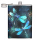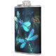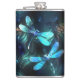 Två genomskinliga, luminösa, turkosa, artificiellt ritade drakoner flyger över nattetid med luminiscent sjö-alger och fibrer. Glowing Dronfly.