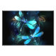 Två genomskinliga, luminösa, turkosa, artificiellt ritade drakoner flyger över nattetid med luminiscent sjö-alger och fibrer. Glowing Dronfly.