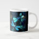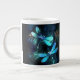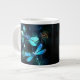 Två genomskinliga, luminösa, turkosa, artificiellt ritade drakoner flyger över nattetid med luminiscent sjö-alger och fibrer. Glowing Dronfly.
