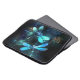 Två genomskinliga, luminösa, turkosa, artificiellt ritade drakoner flyger över nattetid med luminiscent sjö-alger och fibrer. Glowing Dronfly.