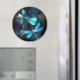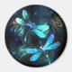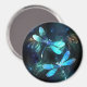 Två genomskinliga, luminösa, turkosa, artificiellt ritade drakoner flyger över nattetid med luminiscent sjö-alger och fibrer. Glowing Dronfly.