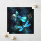 Två genomskinliga, luminösa, turkosa, artificiellt ritade drakoner flyger över nattetid med luminiscent sjö-alger och fibrer. Glowing Dronfly.