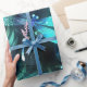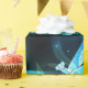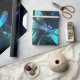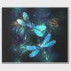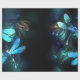 Två genomskinliga, luminösa, turkosa, artificiellt ritade drakoner flyger över nattetid med luminiscent sjö-alger och fibrer. Glowing Dronfly.