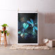 Två genomskinliga, luminösa, turkosa, artificiellt ritade drakoner flyger över nattetid med luminiscent sjö-alger och fibrer. Glowing Dronfly.