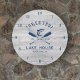 Lägg till en personlig i sjö hus eller i bergsbottenstugan med den här strålande marinblått och grått-klockan, med korsade årar och en hoppande fisk på en ljusa grått-bakgrund, med familjens namn, sjö husets läge och ett fastställt datum i en textmall som är lätt att använda.