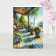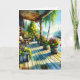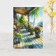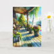 Jag tänker på ditt kort. Ai-konst som skildrar en vacker syn på ett däck på ett hus i sjö tittar ut på bukten med båtdockor och ett däck invändigt med blomkrukor.