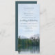 Det här jubileumsvigningskortet för naturlandskapslender innehåller en skiss av oljekastor från ett lätt moget men lugn sjö, med avlägsna evergreener, träd och sten som reflekteras på yta och avlägsna berg under ett blå himmel med kloka moln från en paddlare kajakande på sjö eller en hiker på motsatt strand - blandad typsnitt är en text en samordnad mörk, teal blue, som inbjudan tillbaka - från katz_d_zynes