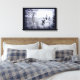 Ett foto som bara visar en glimt av sjö genom snö täckt fir träd. Detta landskap bild är digitalt manipulerat för att se ut som en vattenfärg. Sjö Nojiri är ett glaciärt sjö i de japanska Alpernorna. Det är en populär semesterort och vinter, och vinter-OS 1998 hölls i Nagano och i de omgivande skidbackarna. Även om klimatet är tempererat och sjö sällan fryser ned, är bergsområdena vanligtvis täckta med flera fot snö på vintern.