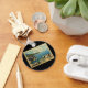 Sjö Tahoe-konstruktionen i Vintage resor stil, med en vacker sjö-scen med träd, sten och blå himmel.