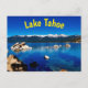 Fotoskott från Sjö Tahoe i Sierran Nevada-bergen. Sötvattensberget sjö är ett vackert och dynamiskt turkosblått färg med snö överst på bergen i bakgrunden av detta scenfoto.