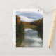 Detta vykort har Sjö Treman som ligger högst upp i Buttermilk Falls State Park, precis söder om Ithaca i Finger Sjöar i delstaten New York. Vatten sjunker mer än 600 fot över 10 olika vattenfall och till slut blir det tomrum i Cayuga Sjö. Under denna vackra höstdag växlade molnen och sol för att skapa ett fascinerande mönster i himlar, som återspeglades i vatten. Skogen som omgav sjö var i stort med fallgropen färger av orange, gult, rött, guld och grönt. Golden shrubbery satte in förgrunden.