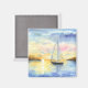 Havssolnedgång. En söt yacht lämnar bukten och går till havs. Vattenfärgbilden ritades och skannades. Vattenfärgslandskap i öppet luft 2024.