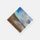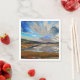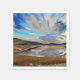 Ett konstverk av sjö med det dramatiska himmel som återspeglas i vatten i sjö. Backe och fält omger sjö.