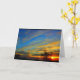 Ett foto av ett solnedgång i fantastisk sjö, komplett med ett ljusblått moln som strömmar himmel, är subjekt på mitt "tankekort". Jag fångade den här scenen längs den vackra Sjö Whusago in Quinney, Wisconsin.