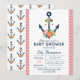 Sjöankare Blommig Babyflicka Shower Inbjudan