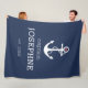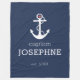 Gör en perfekt present med sjöankare med rött hjärta och ordet "text namn" och etableringsdatum i modern typografi som överlagras på en marinblå fleecefilt.
