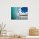 "Seas The Wave" som säger på Haleiwas vattentunnel, Hawaii, när det kraschar på stranden. Sunny blå himmel och öbakgrund.