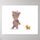 Söt affisch för pojkrum eller barnkammare. Akvarellillustration av en björn i sjömannadräkt som bär på en ankanleksak.