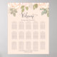 Den här utformningen har en dammig utformning av ro och blommigt med , champagne, burgundy och elfenbensbomull färg stil. med rosa och vita blommor, elegant grönsak och vattenfärgsblad. Hitta din sittplatsangivelse tillsammans med utrymme för upp till 15 bord. Ett rustiskt sittande Bröllop-diagram i blommigt poster. med bakgrund för rosan.
