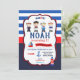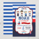 Dessa fina inbjudningskort för sjömannen har sjömannen och alla möjliga andra nautiska saker såsom en båt, en fyr och ett ankare i olika kombinationer av blå, röd och marinblå. Anpassa denna fantastiska inbjudan med ditt barns namn, ålder och födelsedagsfestens detaljer enkelt och snabbt genom att bara trycka på knappen "Anpassa". Du kan även arrangera om och formatera sidans stil och textens placering. Inkluderar en matchande baksida för inbjudan.