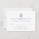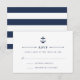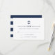 Designad för att samordna med våra inbjudningar till sjömansseminjektivet till havs, detta svarskort för den lilla frakten vid kusten med elegantens blå bokstäver, delikat rep och knut, och ett marint och vitt vågrät som är rakat baker.