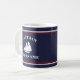 Sjömansbåtkapten med ditt namn personlig mugg. Vitt med rött mot en marin blå bakgrund.