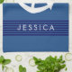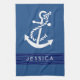 Elegant vit sjöbåtsankare med marint blått rand över anpassningsbarnas ljusare skugga av blå bakgrund. Anpassningsbar och valfritt monogram.
