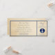 Inbjudningar till ombordstigningskort bröllop biljett, perfekt till kryssningsfartyget bröllop i frakt i en åldras papper med marinblå textdesign.