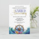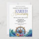 Fira fyra decennier av kärlek med denna eleganta nautiskt tema-tilldelade 40-års bröllopsjubileums inbjudan, med ett vackert detaljerat skeppshjul omgivet av havsvågor och livfulla tropiska blommor. Den sofistikerade marinblå och glänsande gyllene typografin skapar en tidlös kustcharm, perfekt för att hedra en milstolpe jubileum vid havet eller på en strandnära plats.
