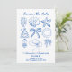 Fira hennes sista resa innan slöjan med denna vintageinspirerade möhippa-helguppsättning. Med en lekfull strandscen med en drink, palmer och randig parasoll ger denna design retrocharm till alla kust- eller kryssningsresor. Den matchande resplanen hjälper gästerna att hålla sig organiserade samtidigt som den bidrar till det roliga temat. Anpassa med brudens namn, plats och datum för att skapa en snygg och koordinerad uppsättning perfekt för en skål vid kusten.