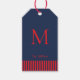 Eleganta och enkla presentkortsetiketter med monogram i marinblått och rött.