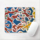 Mousepad med en skärmtryckt utformning av sjögräs i guld, maron och grönt på blå och vit bakgrund