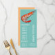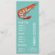 En färgrik och söt meny mall för en modern skaldjurs restaurang eller fisk och skaldjur tema middag fest. Denna söta meny har en söt original illustration av en räka räkor mot en akva teal strand tema anpassningsbar bakgrund. Texten kan anpassas för att passa dina behov.