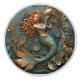 Den vackra orangen hade en sjöjungfru som höll en havsyta snäcka i en 3D-stil-design med teal, guld, kopparnyer.