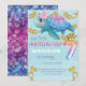Sjöjungfru 7:e Birthday Rosa Blue Guld Glitter Inbjudningar