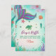 Gästerna i inbjudan går med roligten med det här sjöjungfru raffelkortet för babyduschdiskar, som innehåller skakande sjöjungfru svan, sjöhäckar och stjärnfisk i ett vismliknande tema under havet. Perfekt för havsininspirerade babyduschar och kodad firande. Koordinerar vår matchande sjöjungfru-samling.