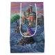 Om du sjöjungfruar i kärlek, så är den här målningen till dig. Sjöjungfru Castle, som är målad av Traci Van Wagoner, har en sjöjungfru med lila hår framför och en sjöjungfru med grönt hår som solar sig på sten-öarna medan en annan sjöjungfru med rosa hårsimmor i havet framför ett slott med lila, orange och gult nedsolat himmel bakom. Den här vackra och visuella fantastiska konsten är en underbar gåva och en fantastisk dekoration för ditt kontor eller ditt hem.