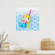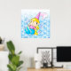 En söt utskrift av en sjöjungfru prinsessa (med regnbåge vingar!) mot en bubbelblå bakgrund.