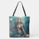 Sjöjungfru med årskallt krona i havets vatten med svält och fisk