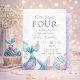 Fira din lilla enes speciella dag med denna drömska sjöjungfru födelsedagsinbjudan. Med mjuka pastellfärger, skimrande sjöjungfrusvansar, snigelskal och ett elegant undervattens tema, är denna inbjudan perfekt för en magisk flick födelsedagsfest. Idealiskt för en 4-årsdag eller någon sjöjungfru-tematisk firande, denna anpassningsbara inbjudan lägger till en lekfull och förtrollande touch till din händelse.
