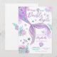 Gör en storslagen intryck med denna fantasifulla sjöjungfru-födelsedagsinbjudan, perfekt för att fira ditt lilla barns stora dag. Med en livfull sjöjungfrus svans i nyanser av lila, rosa och turkos omgiven av snigelskal, sjöstjärnor, koraller och bubblor, fångar denna design magin i ett undervattensäventyr. Idealisk för barn som blir tonåringar eller någon havstematisk fest, sätter denna lekfulla inbjudan tonen för en rolig och minnesvärd fest. Personalisera med ditt barns namn, festdetaljer och RSVP-information för att skapa en verkligt unik souvenir.