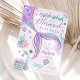 Gör vågor med denna fantasifulla sjöjungfru-födelsedagsinbjudan, perfekt för havsälskande barn! Med en livfull sjöjungfrustjärt i nyanser av lila, rosa och turkos omgiven av sniglar, sjöstjärnor, koraller och bubblor, fångar denna design magin i en undervattensfantasi. Idealisk för flickors födelsedagar, denna anpassningsbara inbjudan lägger till en lekfull touch till din fest medan alla viktiga detaljer visas vackert. Ett charmerande val för vilken lilla sjöjungfrus stora dag!