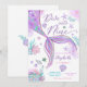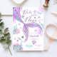 Gör en storslagen inbjudan med denna förtrollande sjöjungfru-inbjudan till födelsedagsfest, perfekt för barn som älskar havet. Med en livfull sjöjungfrus svans i skimrande nyanser av lila, rosa och turkos, omgiven av snigelskal, sjöstjärna, korall och bubblor, sätter denna fantasifulla design tonen för ett undervattensäventyr. Den mjuka akvarellbakgrunden ger en drömlik känsla, medan de lekfulla teckensnitten framhäver ditt barns speciella firande. Idealiskt för flickors födelsedagar, säkerställer denna anpassningsbara inbjudan en magisk och minnesvärd festupplevelse.