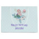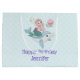 Gåsväska med en bra illustration. Designad med en söt sjöjungfru flicka som rider en lycklig delfin. En liten maneter-vän följer med dem. Dekorerad med små stänk av faux guld glitter. Ljusblå bakgrund med blekt rosa polka dots.