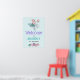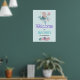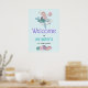 Välkomna till födelsedagen poster med en bra illustration. Designad med en söt sjöjungfru flicka som rider en lycklig delfin. En liten maneter-vän följer med dem. Dekorerad med små stänk av faux guld glitter. Ljusblå bakgrund med blekt rosa polka dots.