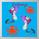 Cute Red Smiling Octopus och sjöjungfru med Rosa, med vit duvflygande stil-design som anpassar sig, anpassar sig genom att byta till ditt namn på valfri bakgrund färg